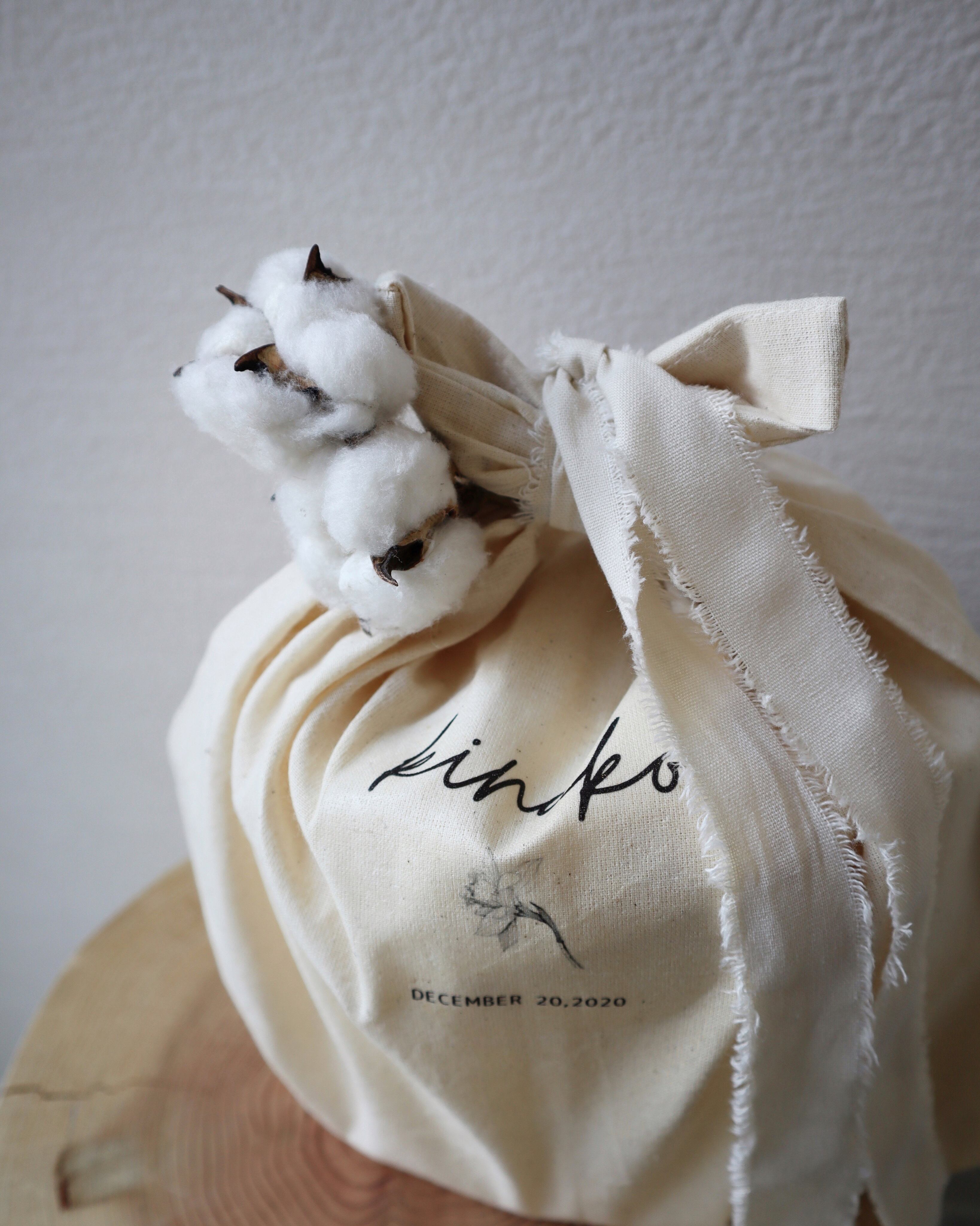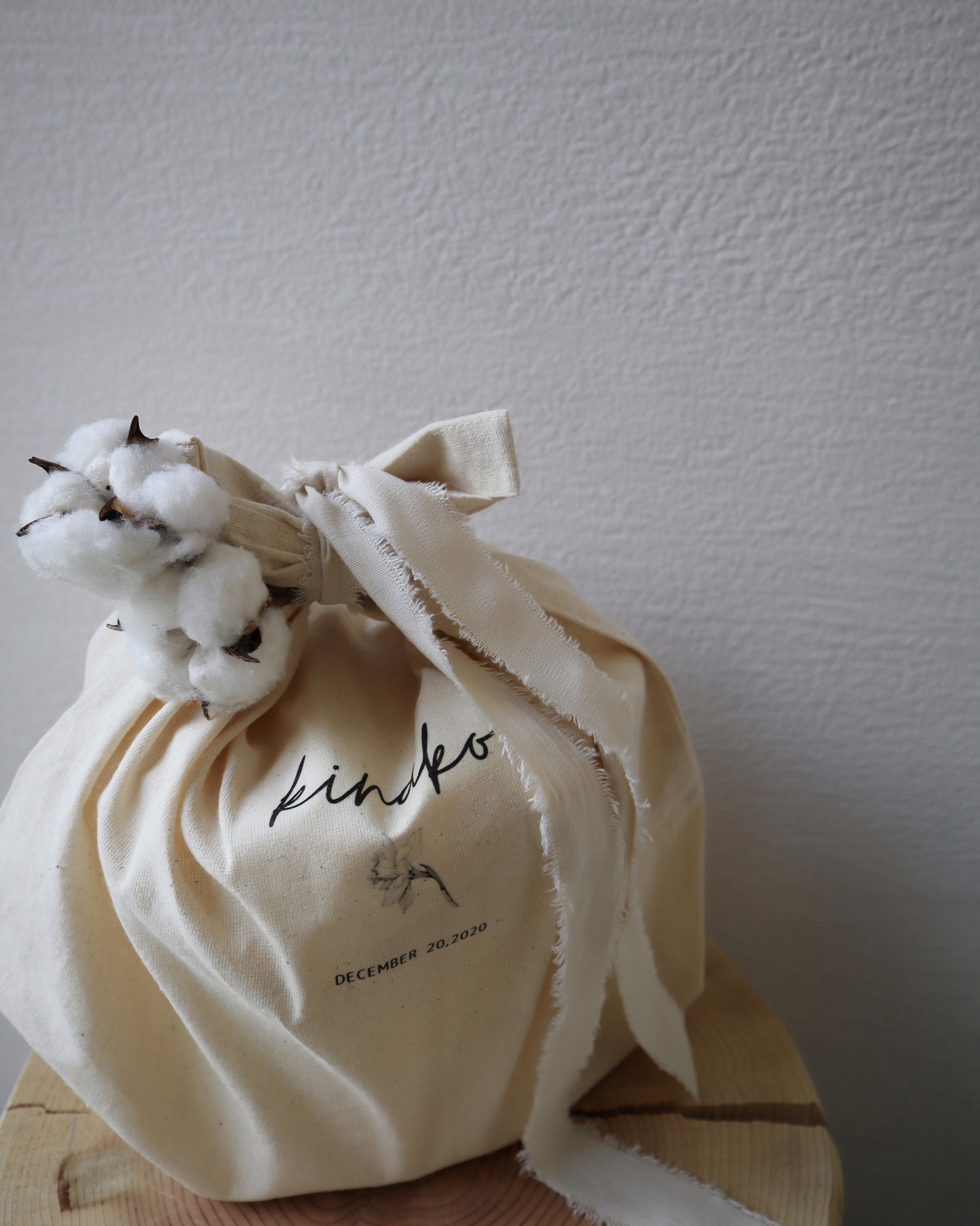 お名前、お誕生日、誕生花をお入れしたエコバッグにお包みしております。